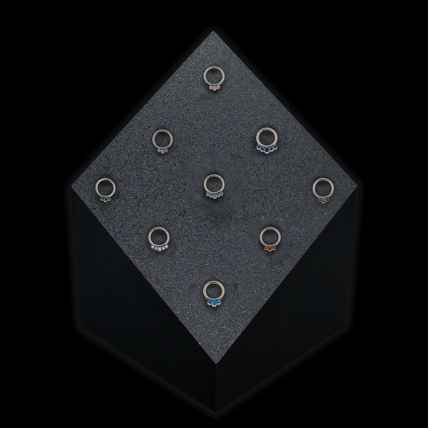 Choose from 4 dazzling ring styles, all featuring 16G forward-facing, bezel-set gems or synthetic opals in ASTM F-136 titanium—ideal for septum or daith piercings. These rings are vibrant, secure, and built for maximum comfort, durability, and sparkle.