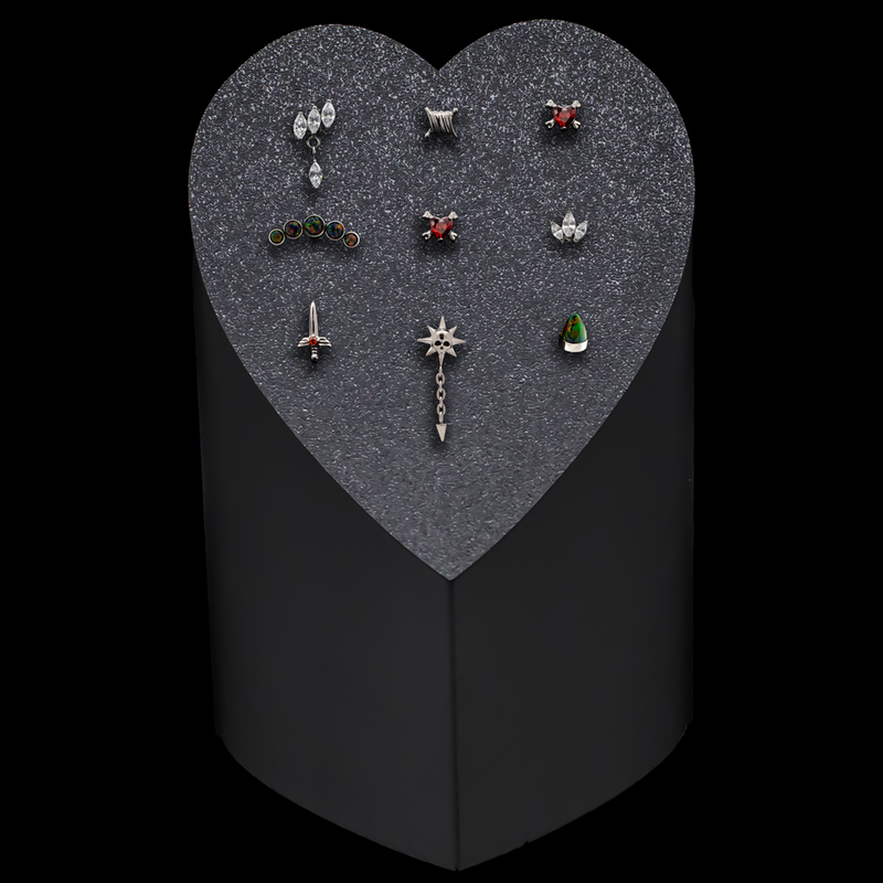 9 Post Heart Display w/ 16G Internally Threaded Ends