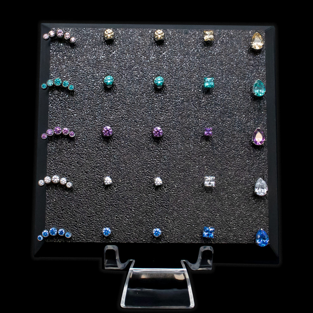Showcase your sparkle in style with our compact, square-shaped display featuring sleek beveled edges—the perfect accent for any countertop or display case. This elegant setup lets you curate your own collection of titanium threadless ends, customized to match your shop’s unique vibe.